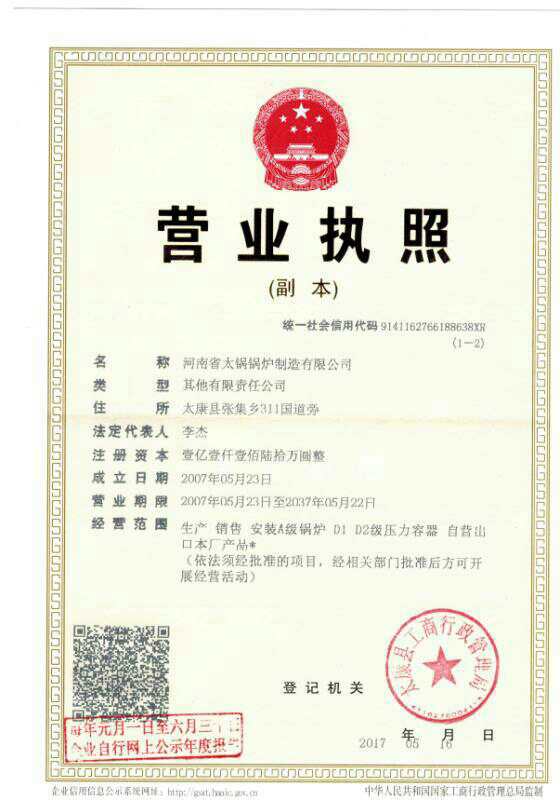 河南省太鍋鍋爐制造有限公司(原河南省太康鍋爐廠始建于1976年)始建于70年代初,經(jīng)40多年的艱辛探索,靠科技興業(yè),走科學(xué)管理之路,現(xiàn)已發(fā)展成為承接制造、安裝、設(shè)計大、中型供熱系統(tǒng),生產(chǎn):SZS燃油燃?xì)庹羝仩t、燃煤蒸汽鍋爐、燃油鍋爐、燃?xì)忮仩t、電加熱鍋爐、生物質(zhì)鍋爐、茶水鍋爐、有機(jī)熱載體鍋爐、熱風(fēng)鍋爐,蒸壓釜、燃油蒸汽鍋爐、燃?xì)庹羝仩t、燃油熱水鍋爐、燃?xì)鉄崴仩t并承擔(dān)安裝120噸熱水鍋爐、蒸汽鍋爐,生物質(zhì)鍋爐,加工制造一、二類蒸壓釜、壓力容器,化工機(jī)械的省一級**企業(yè)。